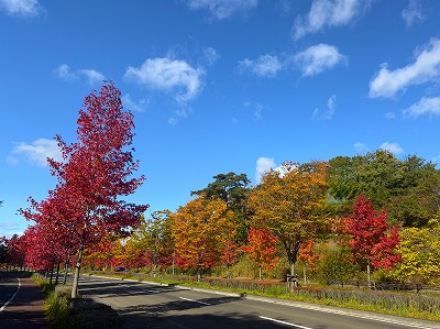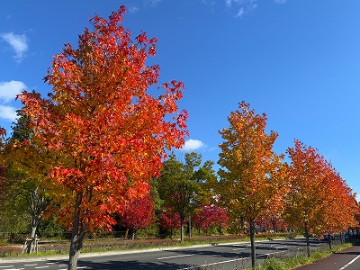 春夫のランニングコースに山の紅葉に勝るとも劣らない