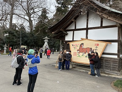 塩竃神社本殿ではなく御新馬舎参拝です。いつもは参拝者も