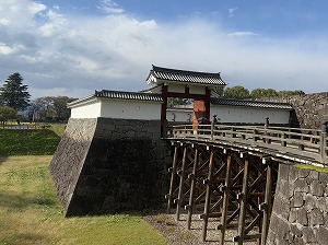 | 霞城公園へ | 本丸一文字門 | 最上義光 騎馬像 |