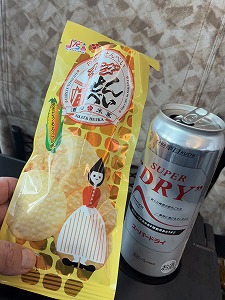 | 遅めの昼食(ビール付) | 大宮からこまち号で | お土産は幅広うどん |