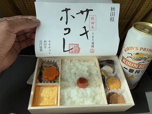 遅めの昼食(ビール付) | 大宮からこまち号で | お土産は幅広うどん |