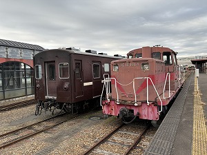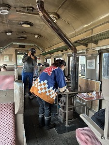 | 太宰の故郷なんで | こちらがストーブ列車 | レトロな車内 |