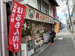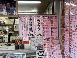 | 名物のホルモン揚げを購入 | 揚げ物の種類がすごい! | これがホルモン揚げ 中身はちくわ! |