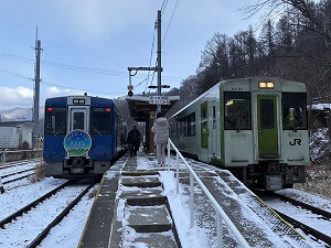 | 信濃川上駅 | 先頭車両からの車窓 | 2号車の様子 |