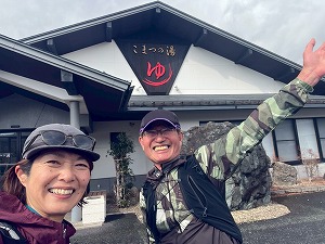 | ウォーキング組と合流 | こまつの湯がゴール | 風呂上りにビールで乾杯♪ |