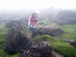 (麓は曇り、稜線上は濃霧・強風、後烏帽子岳で大雨)