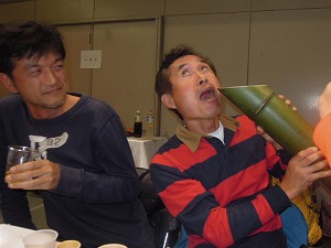 お待ちかねのウェルカムパーティー!地元の料理と地酒(竹酒)、そして神流の