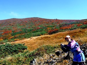 快晴で、8合目から上の錦に染まった栗駒山に感動しながら至福の