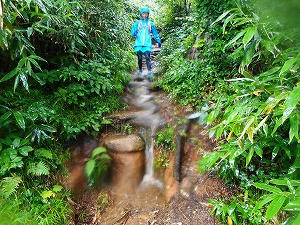 でも、だんだん曇ってきて入山と同時に雨が・・ 稜線まで出れば