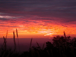 9月11日(土)4時に目をさますがまだ暗いので、4時半までシュラフで待つ。準備をしていると東の空が赤くなってきた。なんと素晴らしい朝焼けだろう!これだけでも今回の合宿に来た甲斐があった。食事を済ませ大黒天まで移動する。準備体操をして5時45分出発、登山道というよりも遊歩道といった刈田岳への登りを20分ほどで登り、刈田嶺神社に参拝する。いつ見てもお釜は美しいが、あまりにも観光地化されて残念な面もある。そんなことを言っている俺もエコーラインのお陰で簡単にここまで来れたのだが・・・・・熊野岳からの眺望も素晴らしかった。山形の山々を独り占めすることができた。今回が秋田のトレーニングでなかったら、ここでのんびりしたいところだった。熊野神社でも秋田100キロの完走を祈願して、また刈田岳をめざす。この時間帯ほとんど観光客はいない、標高1800mのコースを走る爽快感は最高だった。